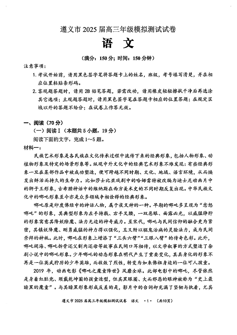 贵州省遵义市2025届高三年级模拟测试试卷(遵义三模)语文.pdf