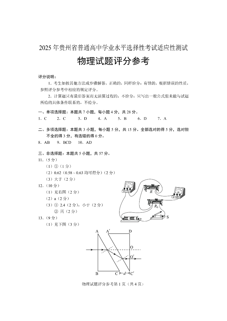 贵州省遵义市2025届高三年级模拟测试试卷(遵义三模)物理答案.pdf
