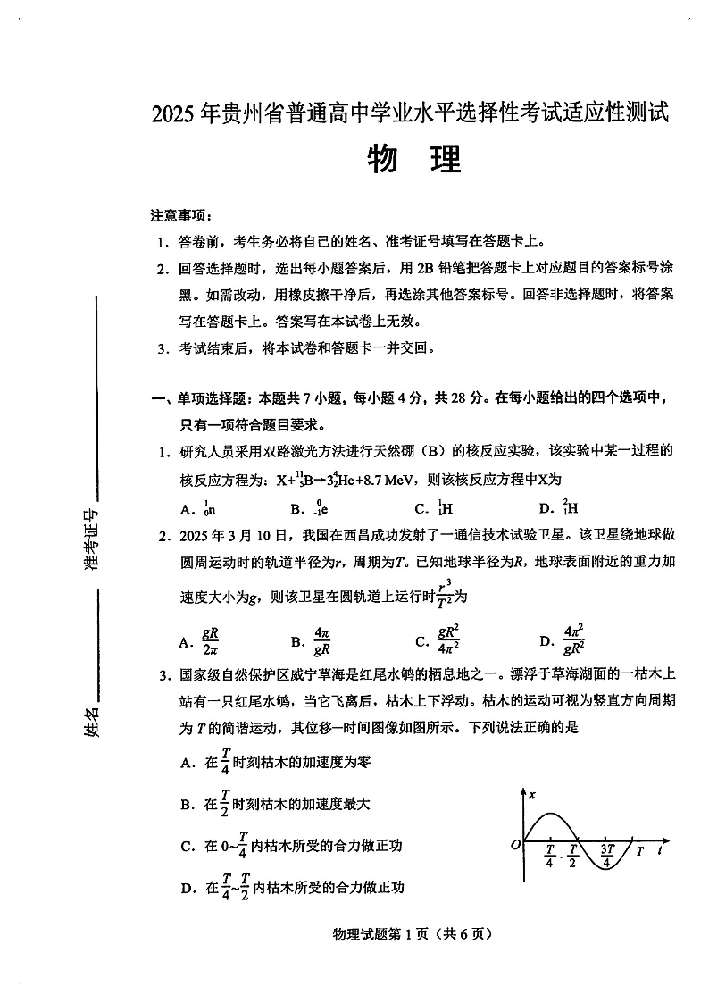 贵州省遵义市2025届高三年级模拟测试试卷(遵义三模)物理.pdf