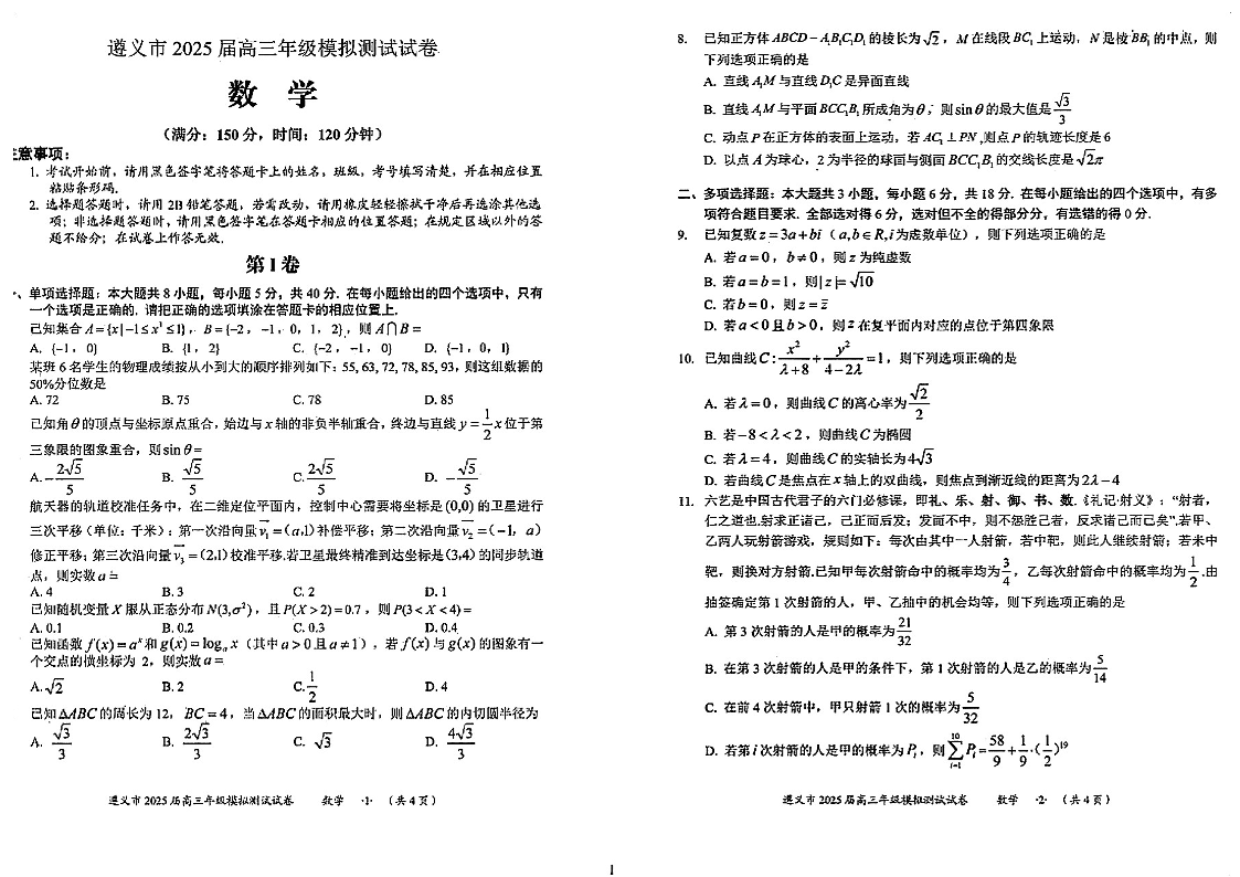 贵州省遵义市2025届高三年级模拟测试试卷(遵义三模)数学.pdf
