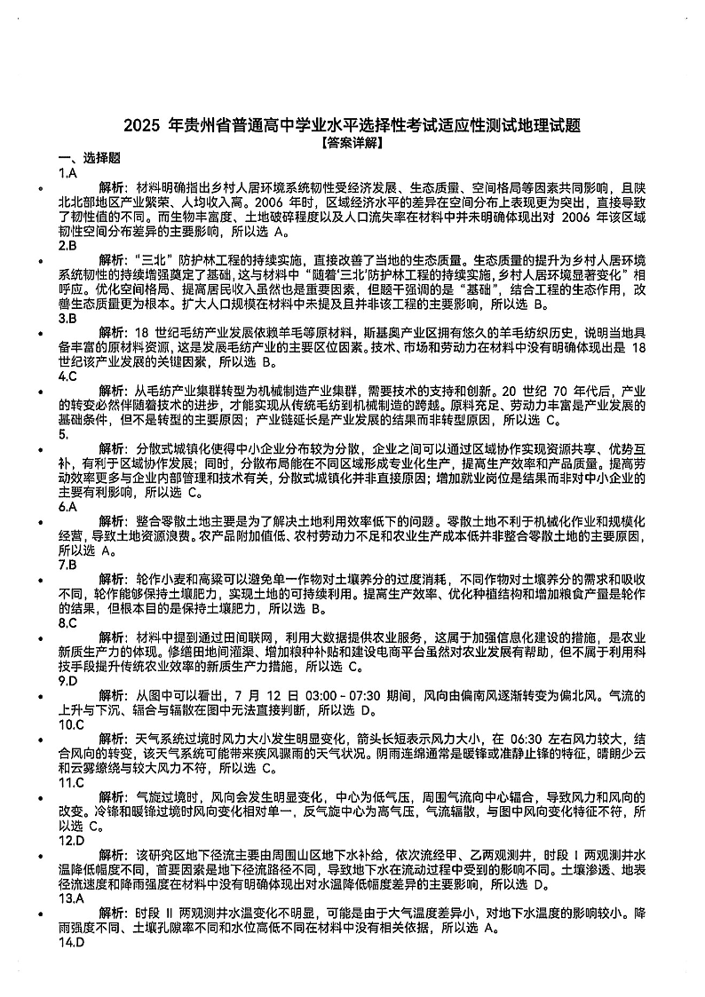 贵州省遵义市2025届高三年级模拟测试试卷(遵义三模)地理答案.pdf