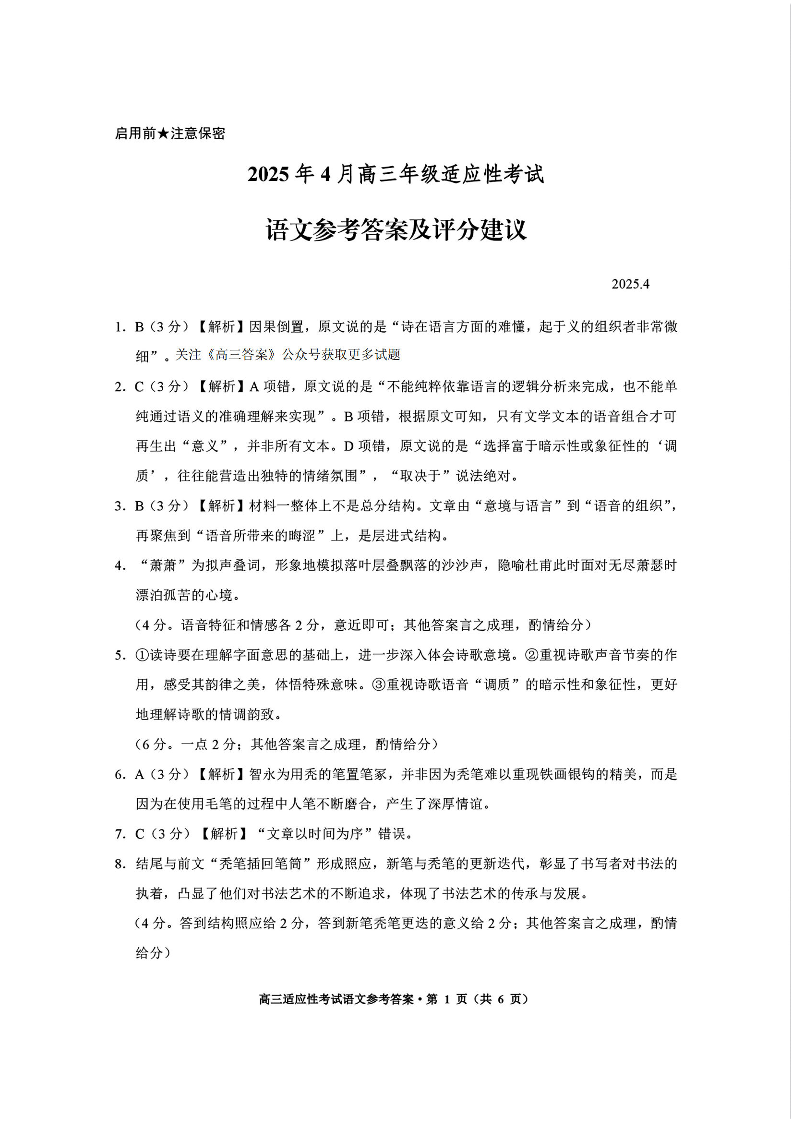 贵州省考试院2025年4月高三年级适应性考试 语文答案.pdf