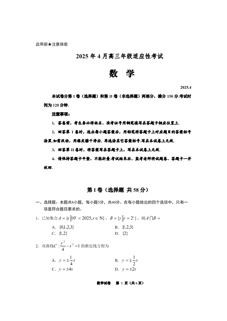 贵州省考试院2025年4月高三年级适应性考试 数学.pdf