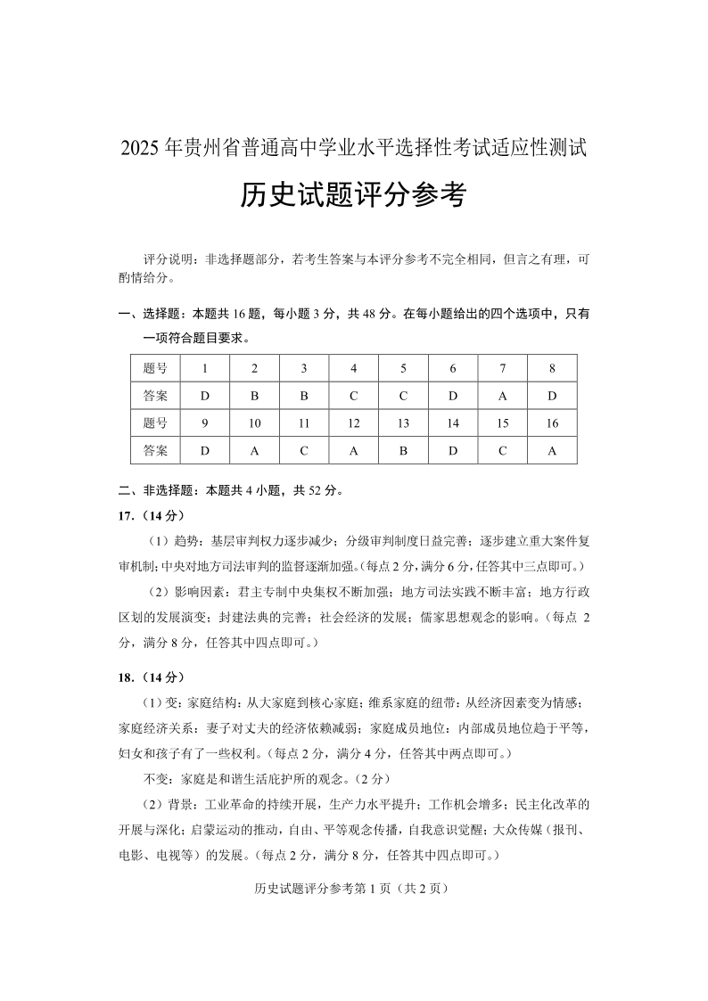 贵州省考试院2025年4月高三年级适应性考试 历史答案.pdf