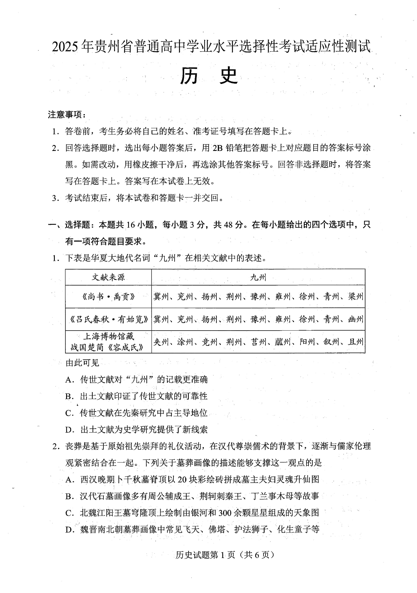 贵州省考试院2025年4月高三年级适应性考试 历史.pdf