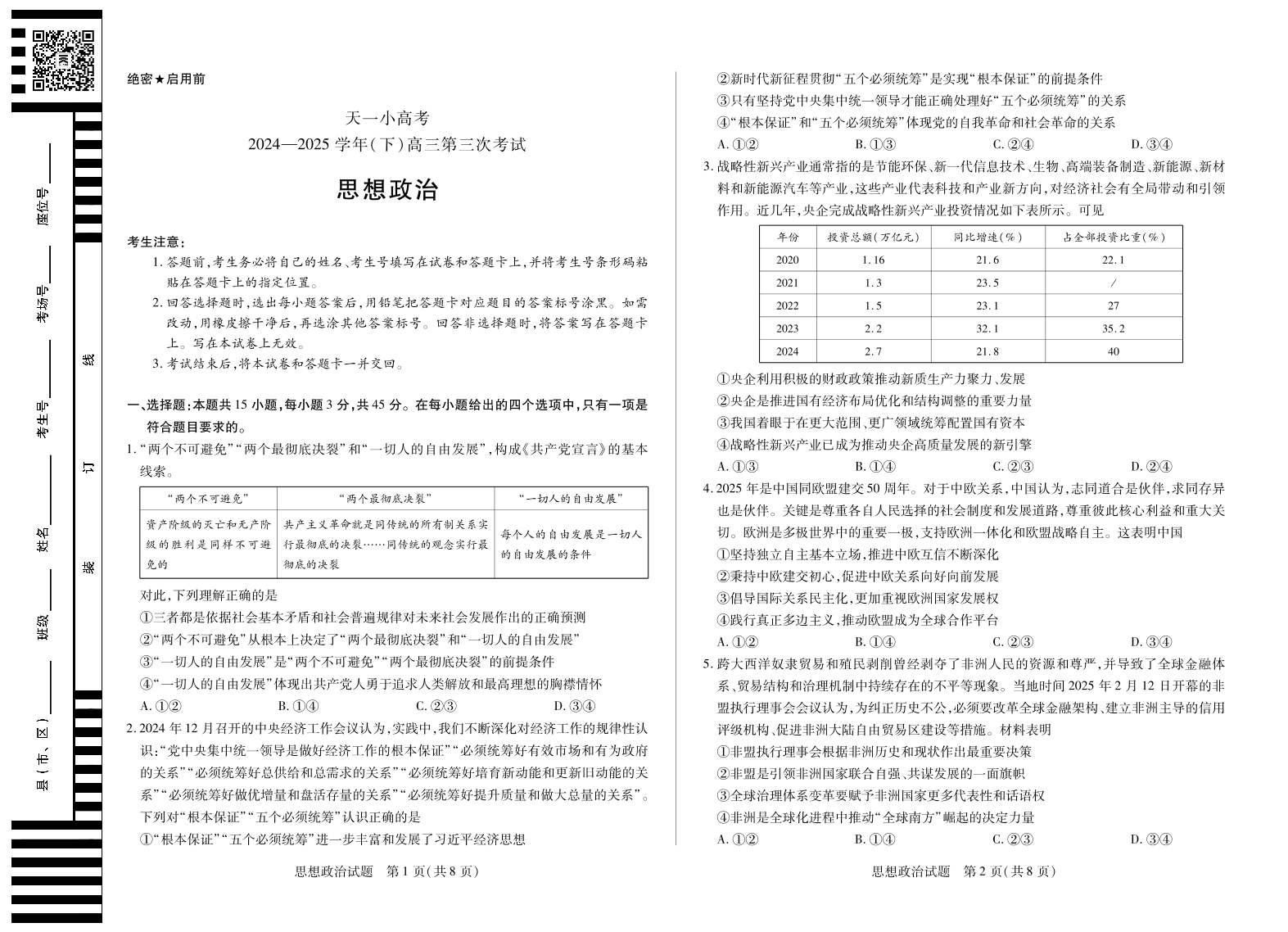 天一小高考2024-2025学年(下)高三第三次考试 政治.pdf