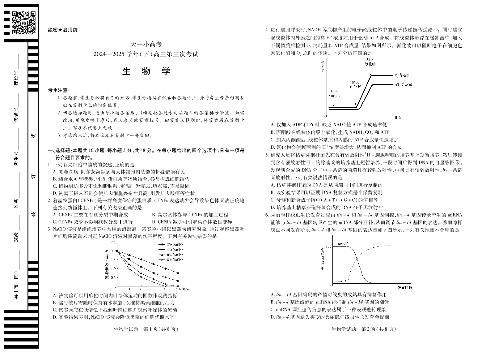 天一小高考2024-2025学年(下)高三第三次考试 生物.pdf