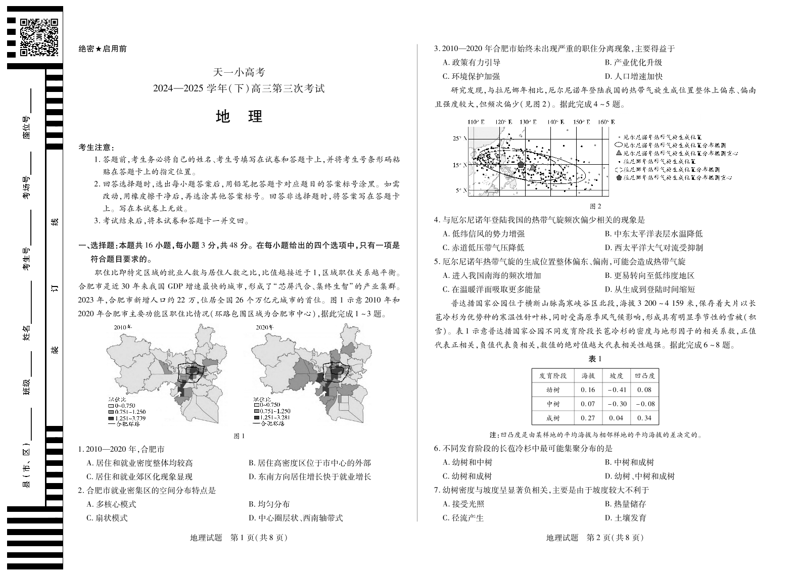 天一小高考2024-2025学年(下)高三第三次考试 地理.pdf