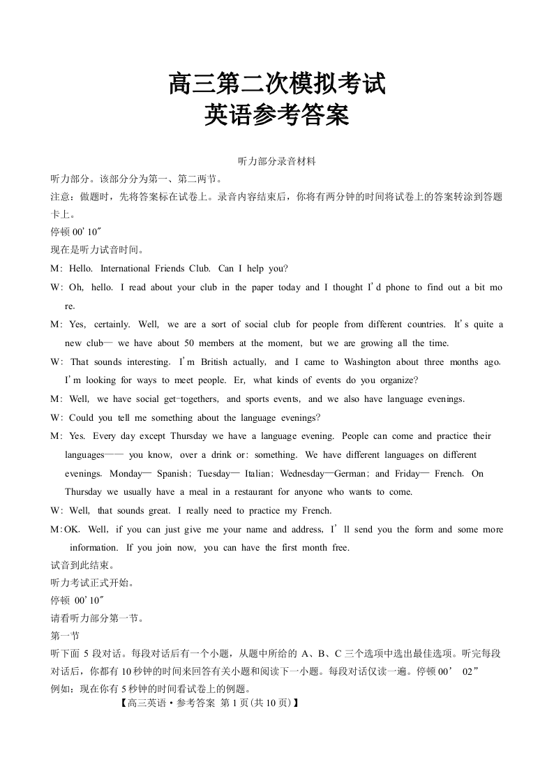 河南省新乡市部分学校2025年高三第二次模拟考试(新乡二模)英语答案.pdf