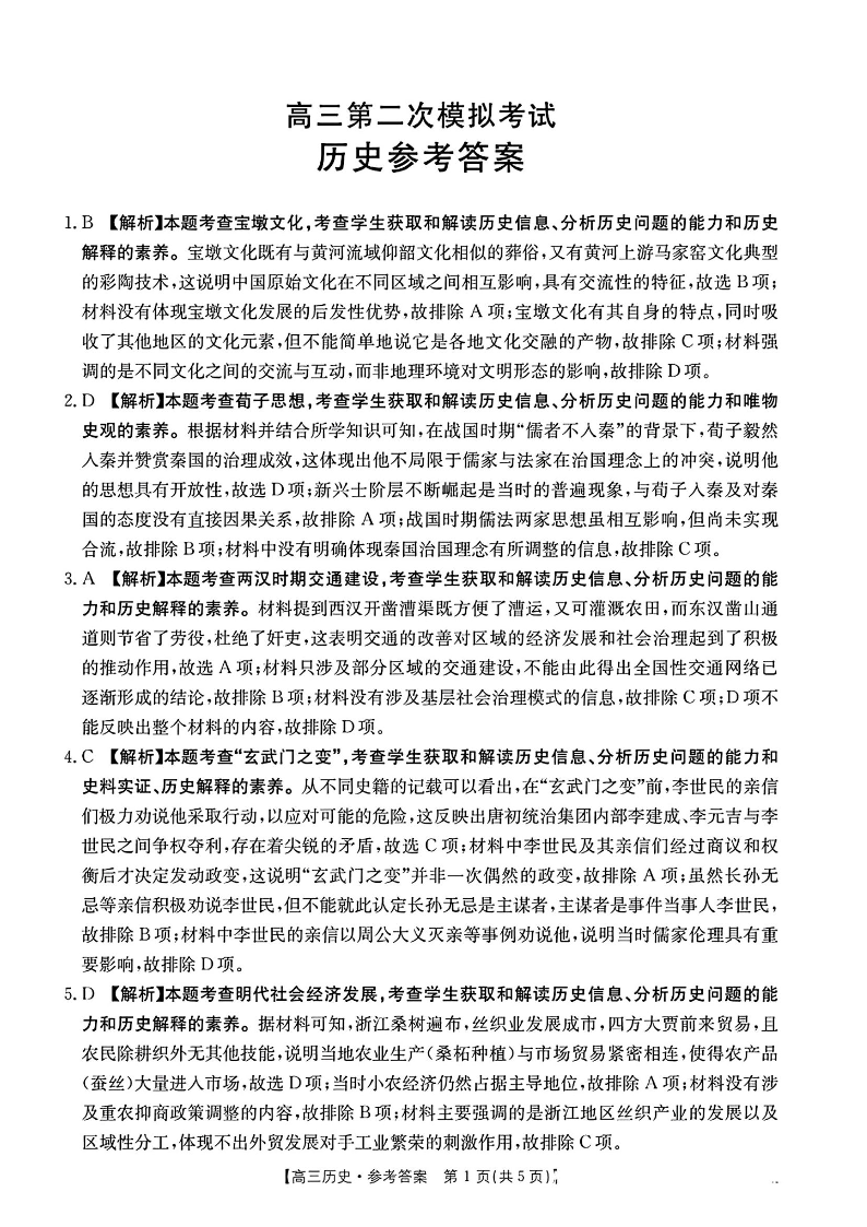 河南省新乡市部分学校2025年高三第二次模拟考试(新乡二模)历史答案.pdf