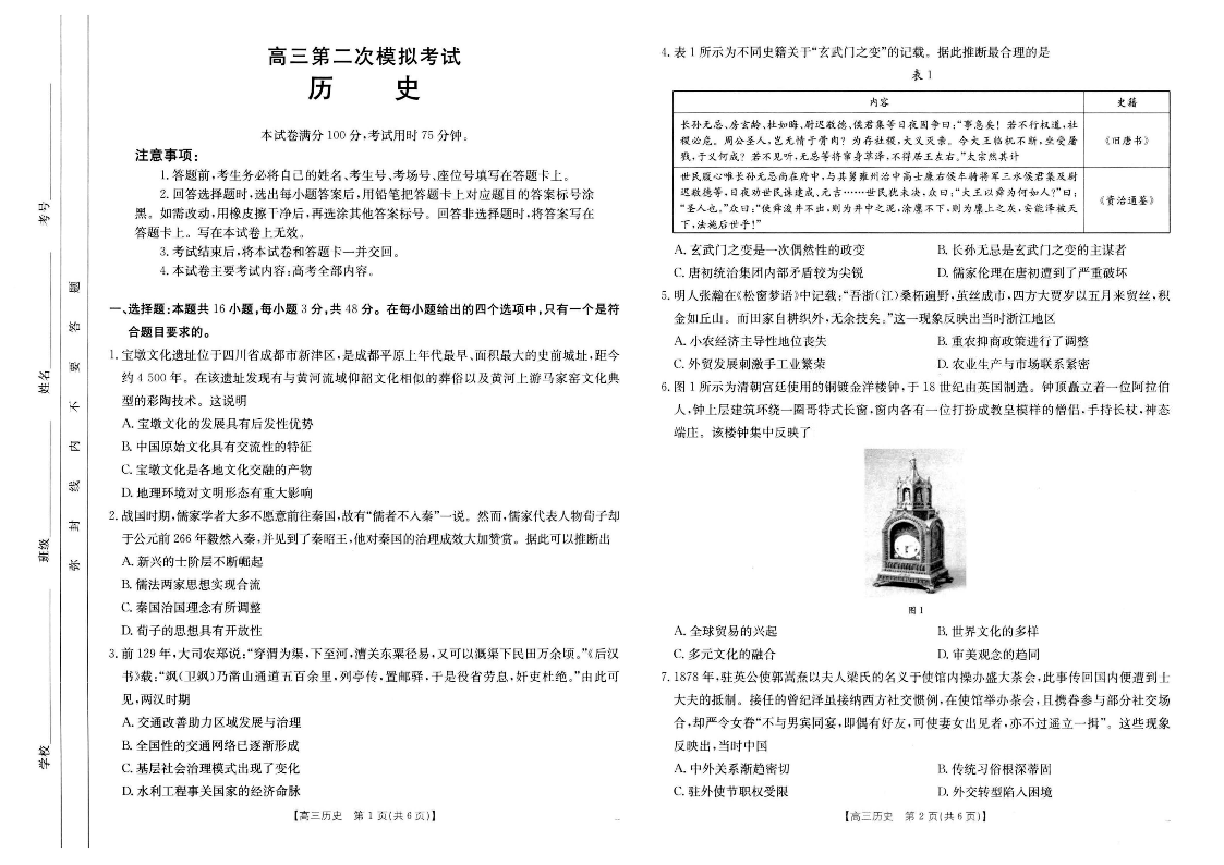 河南省新乡市部分学校2025年高三第二次模拟考试(新乡二模)历史.pdf