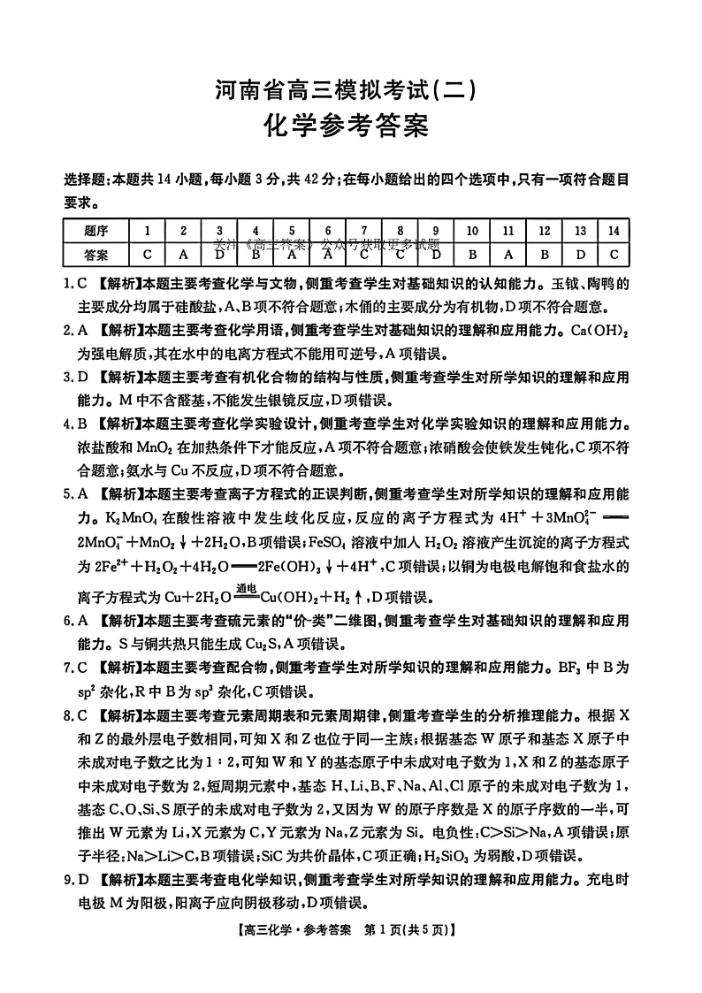 河南省新乡市部分学校2025年高三第二次模拟考试(新乡二模)化学答案.pdf