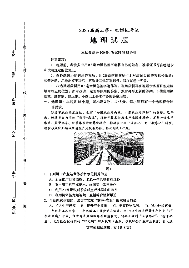 河北省保定市2025届高三下学期第一次模拟考试(保定一模)地理.pdf