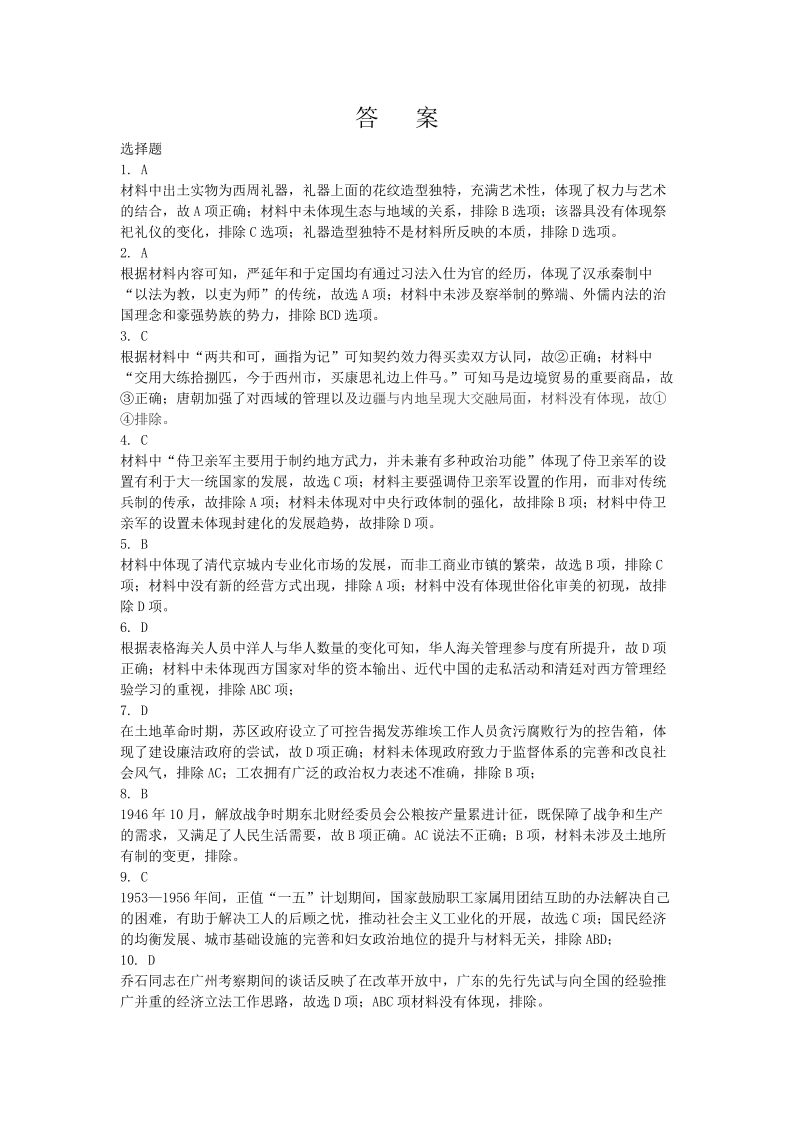 2025年东北三省四城市联考暨沈阳市高三质量监测(二)历史答案.pdf