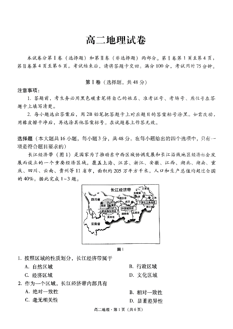贵阳一中2023级高二年级教学质量监测卷(三)地理.pdf