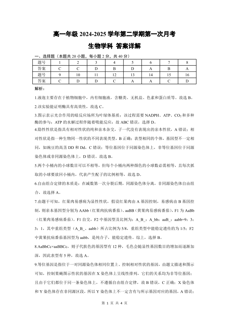 高一生物答案.pdf