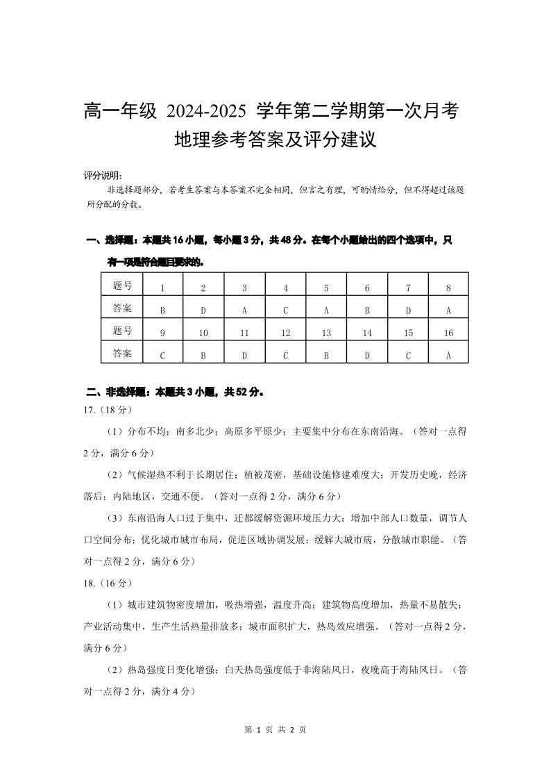 高一地理答案.pdf