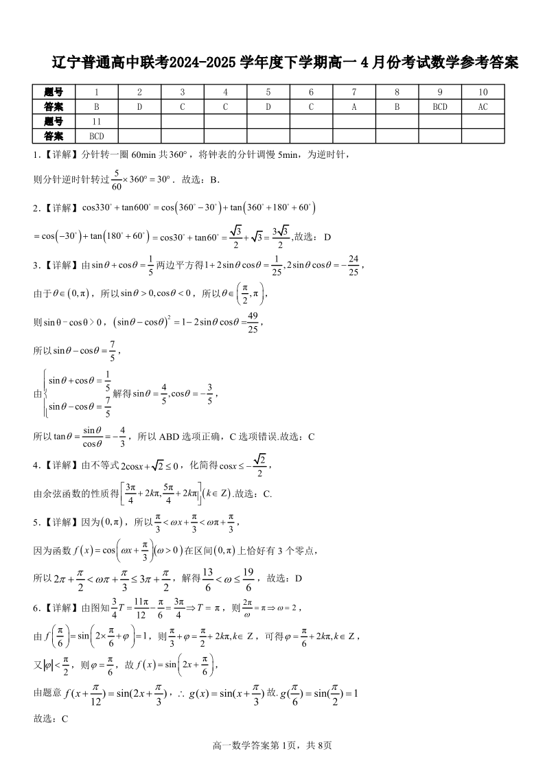 辽宁省普通高中2024-2025学年高一下学期4月联考 数学答案.pdf