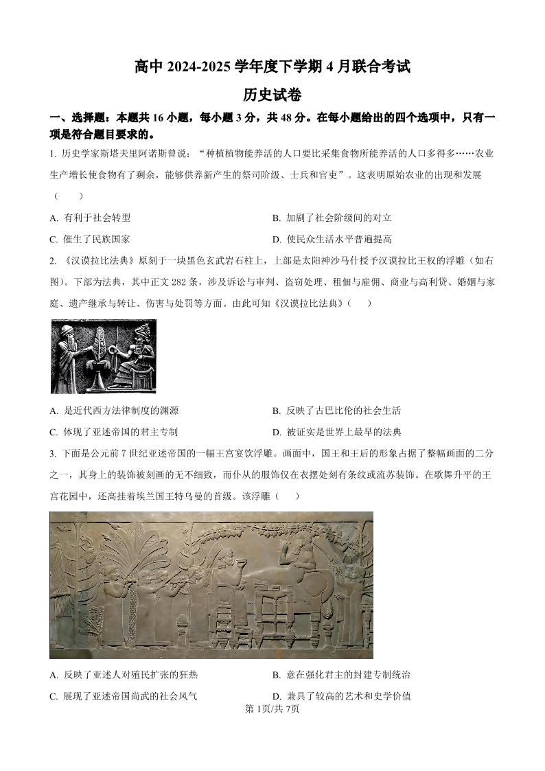 辽宁省普通高中2024-2025学年高一下学期4月联考 历史.pdf