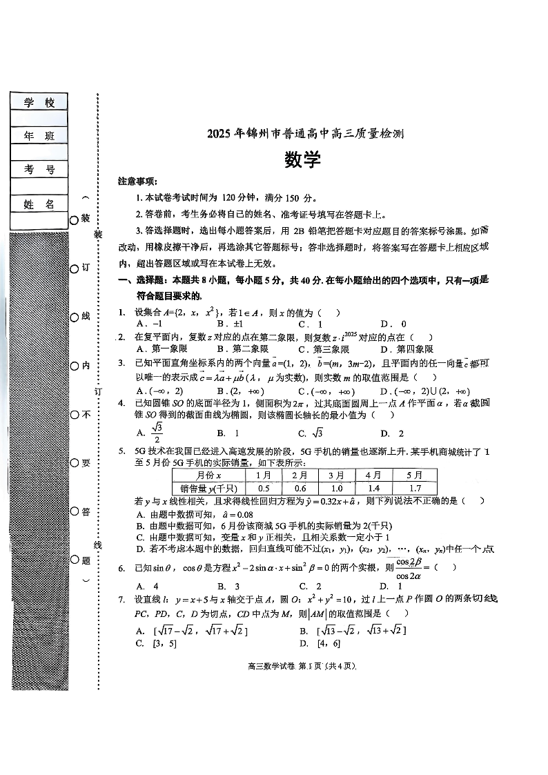 辽宁省锦州市2025届高三下学期4月质量检测(锦州一模)数学.pdf