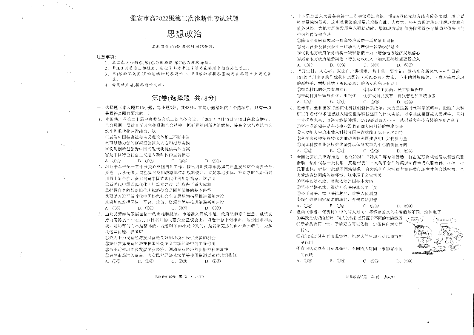 四川省雅安市2024-2025学年高三下学期第二次诊断性考试 政治.pdf