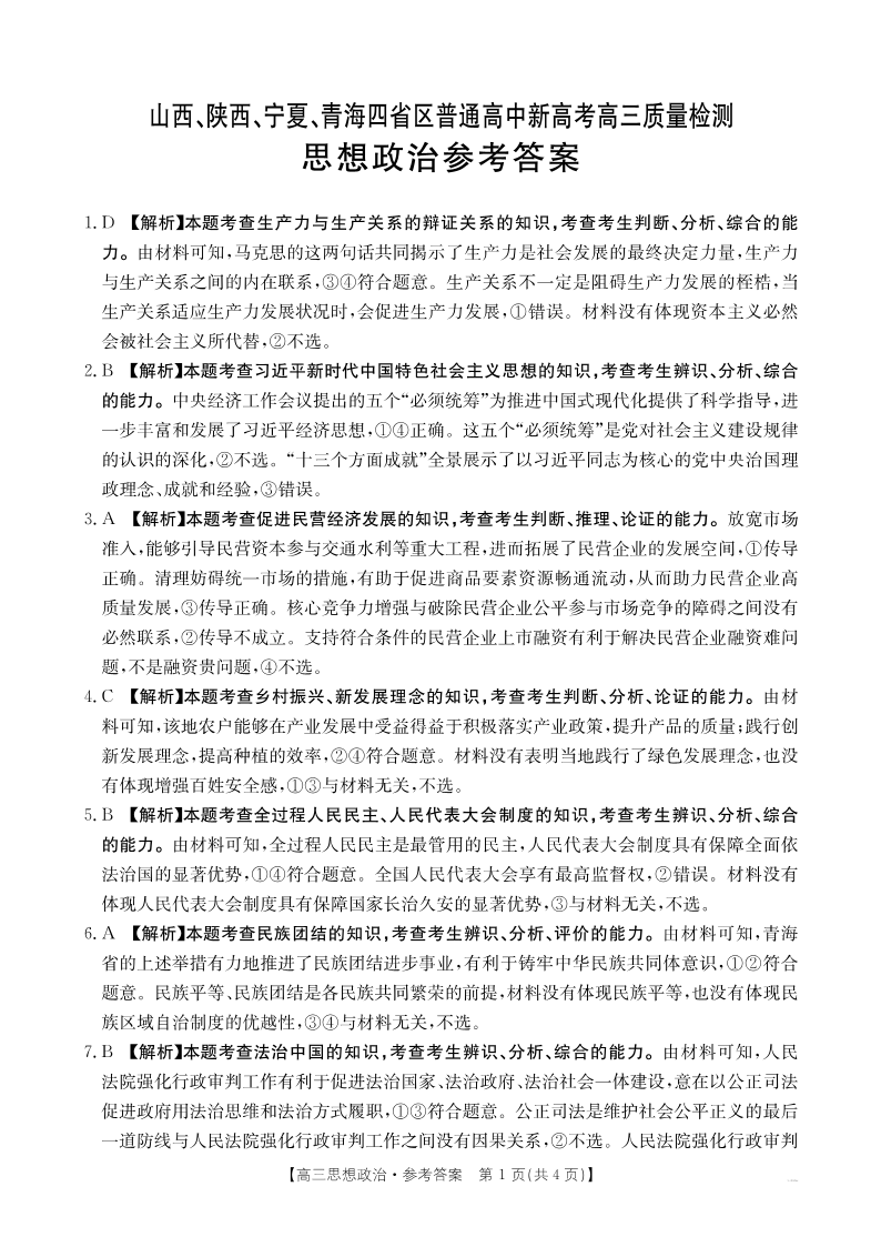 山西、陕西、宁夏、青海四省区普通高中新高考高三质量检测 政治答案.pdf