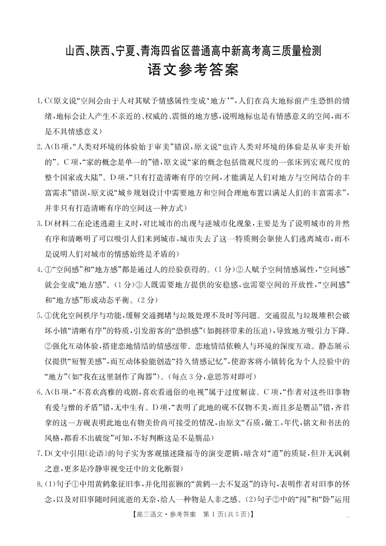 山西、陕西、宁夏、青海四省区普通高中新高考高三质量检测 语文答案.pdf