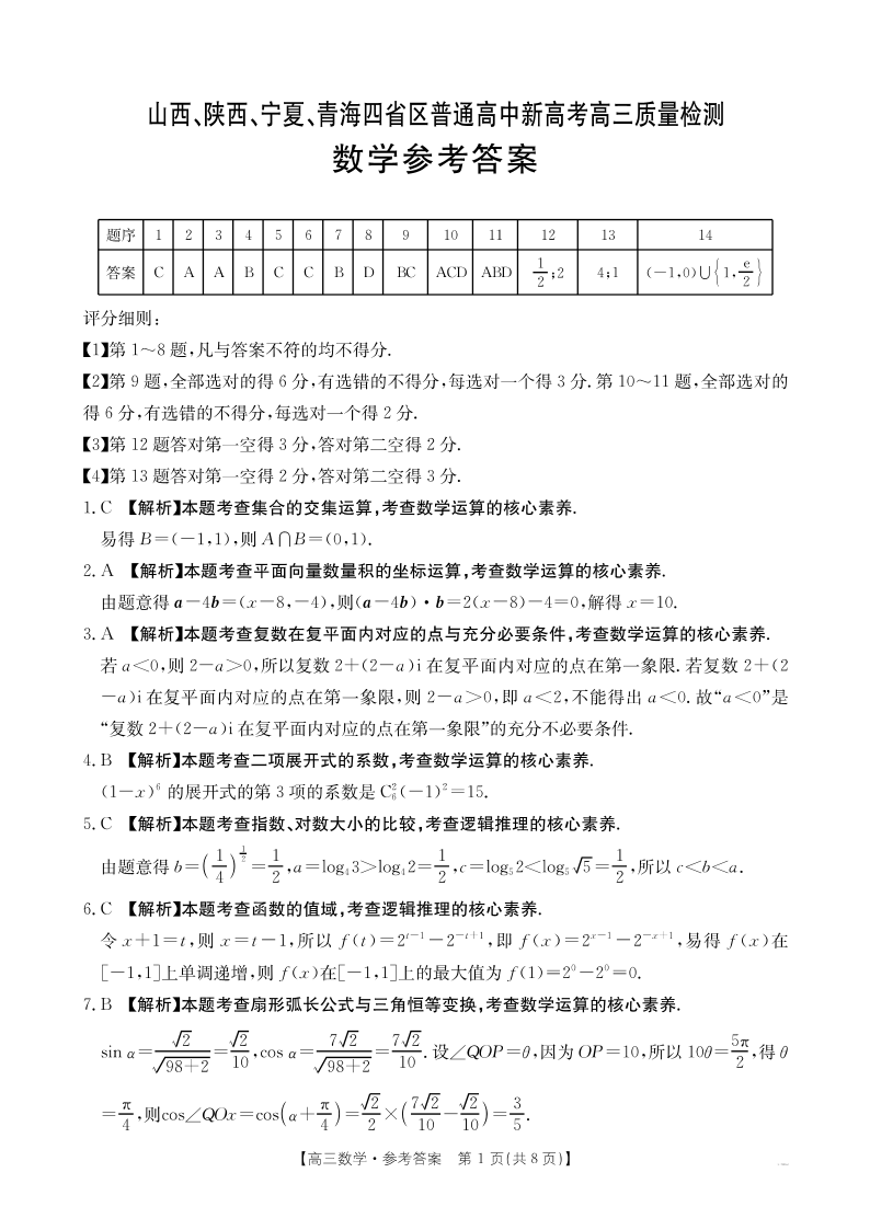 山西、陕西、宁夏、青海四省区普通高中新高考高三质量检测 数学答案.pdf