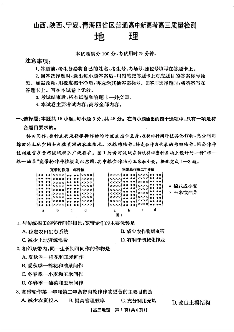 山西、陕西、宁夏、青海四省区普通高中新高考高三质量检测 地理(含答案).pdf