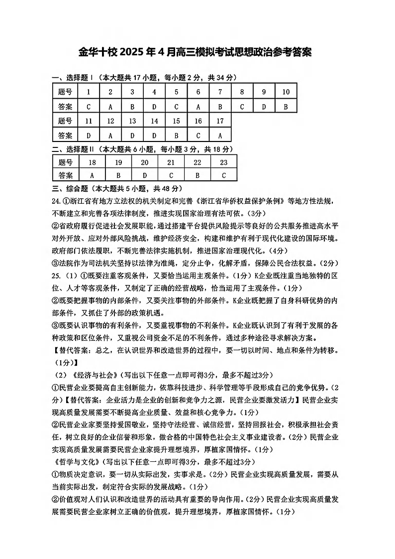 金华十校2025年4月高三模拟考试 政治答案.pdf
