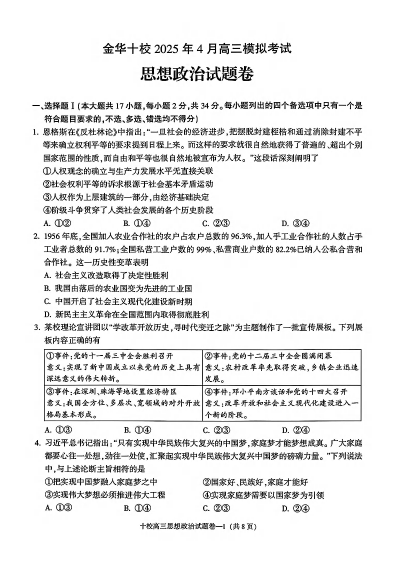 金华十校2025年4月高三模拟考试 政治.pdf