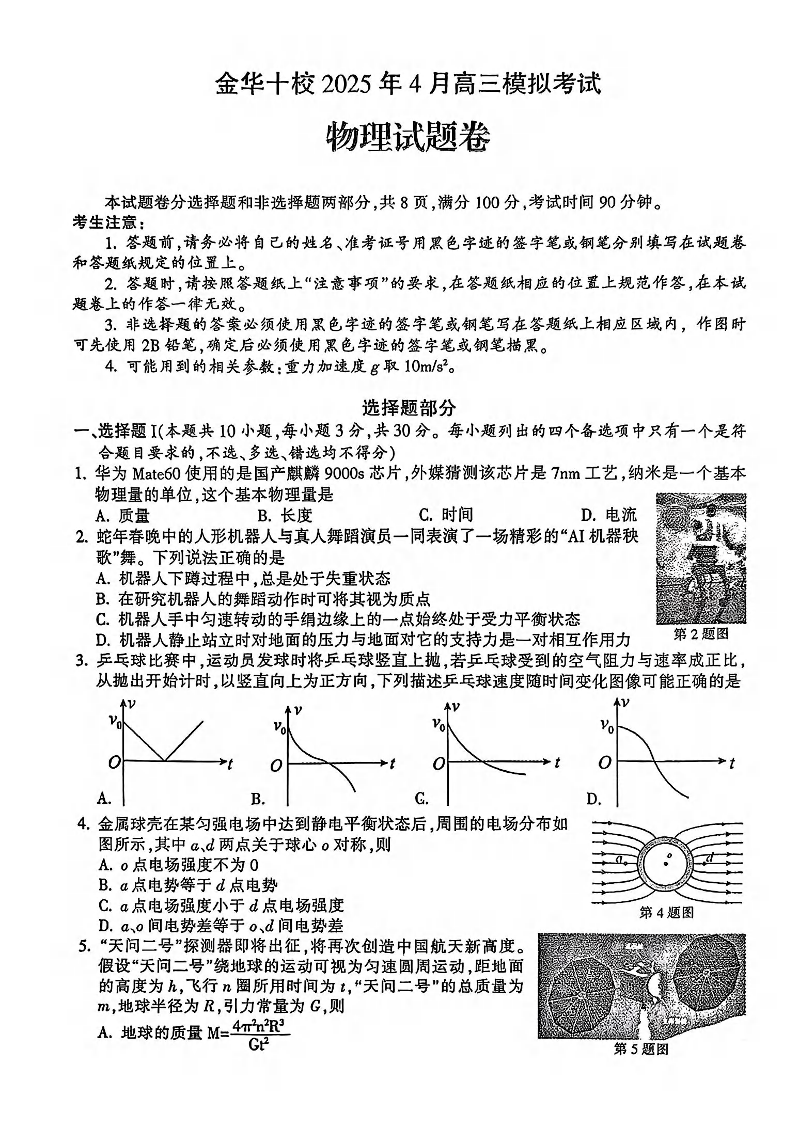 金华十校2025年4月高三模拟考试 物理.pdf