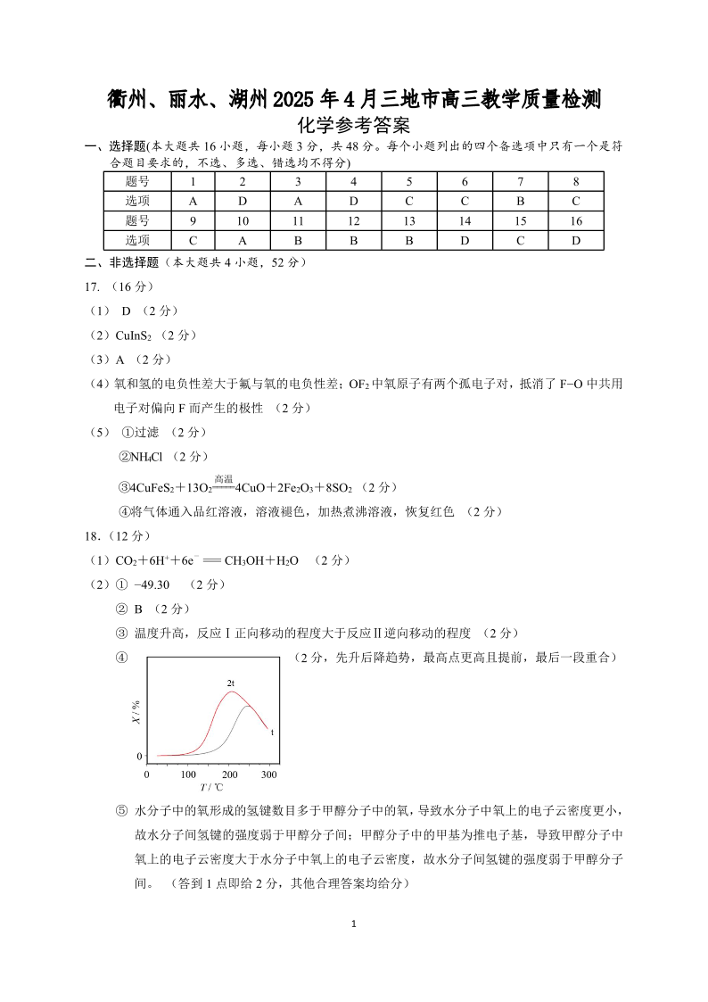 衢州、丽水、湖州2025年4月三地市高三教学质量检测 化学答案.pdf