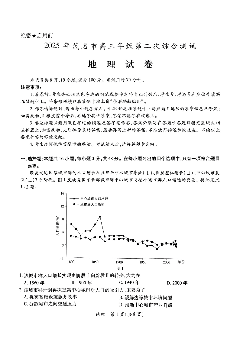 广东省茂名市2025年高三年级第二次综合测试 地理.pdf