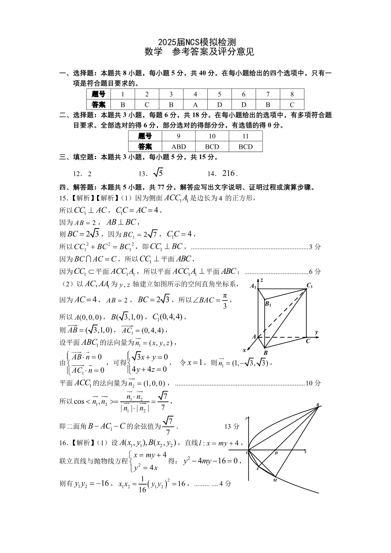 江西省南昌市2025届高三第二次模拟考试 数学答案.pdf