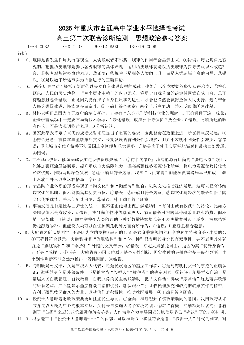 重庆市普通高中2025年高三第二次联合诊断检测(康德卷)政治参考答案.pdf