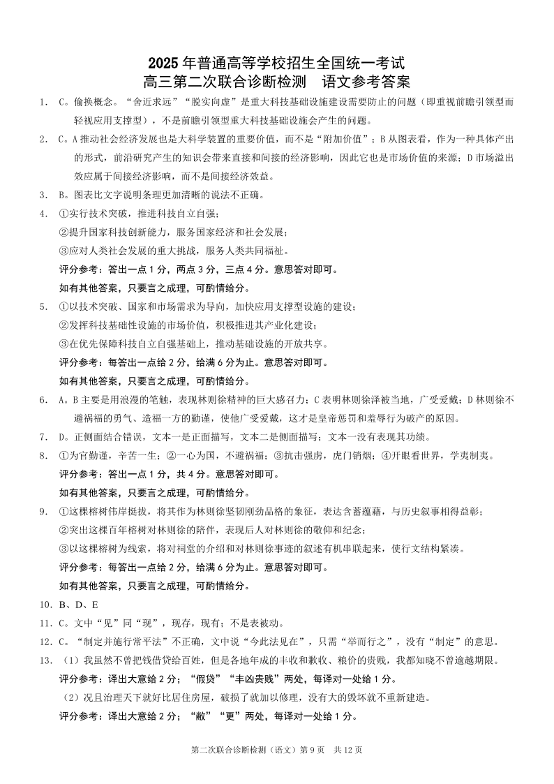重庆市普通高中2025年高三第二次联合诊断检测(康德卷)语文参考答案.pdf