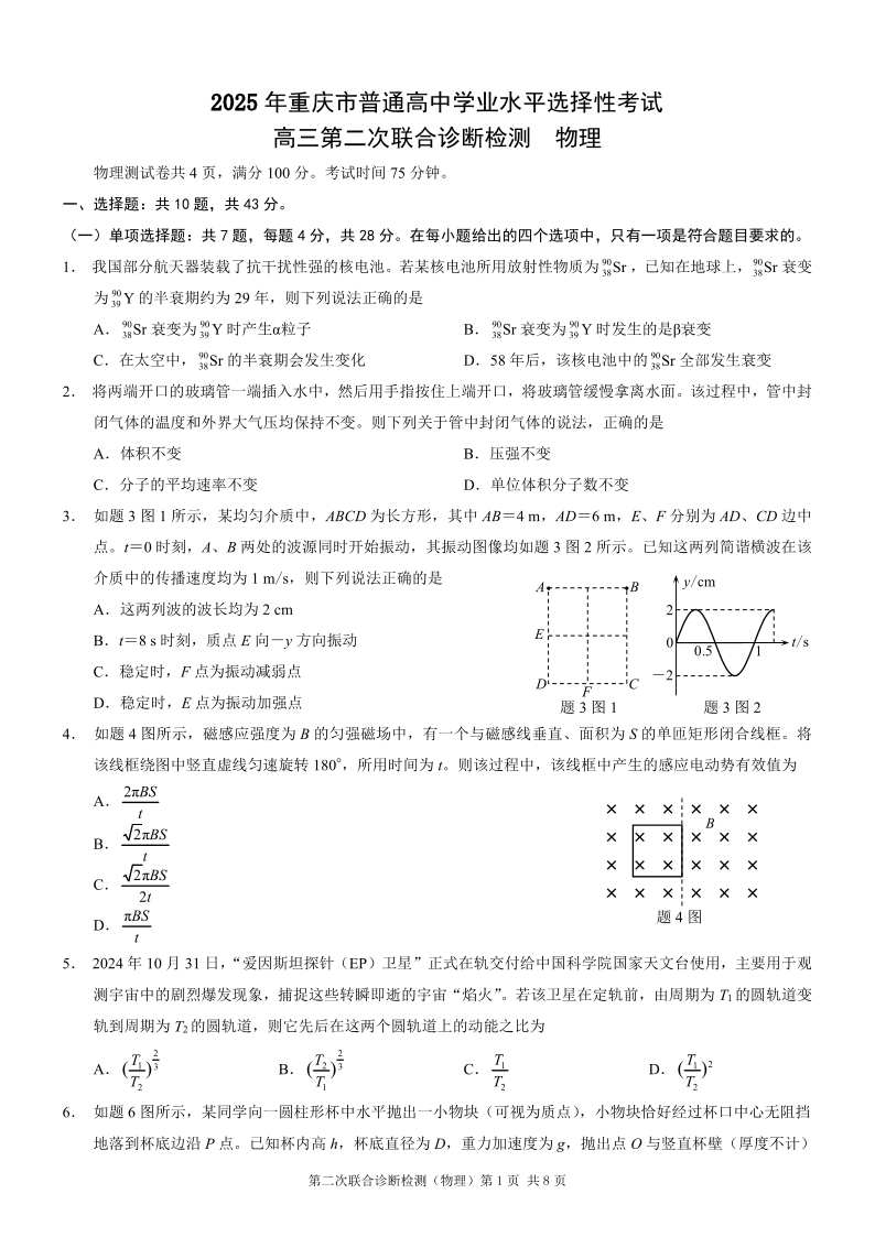 重庆市普通高中2025年高三第二次联合诊断检测(康德卷)物理.pdf