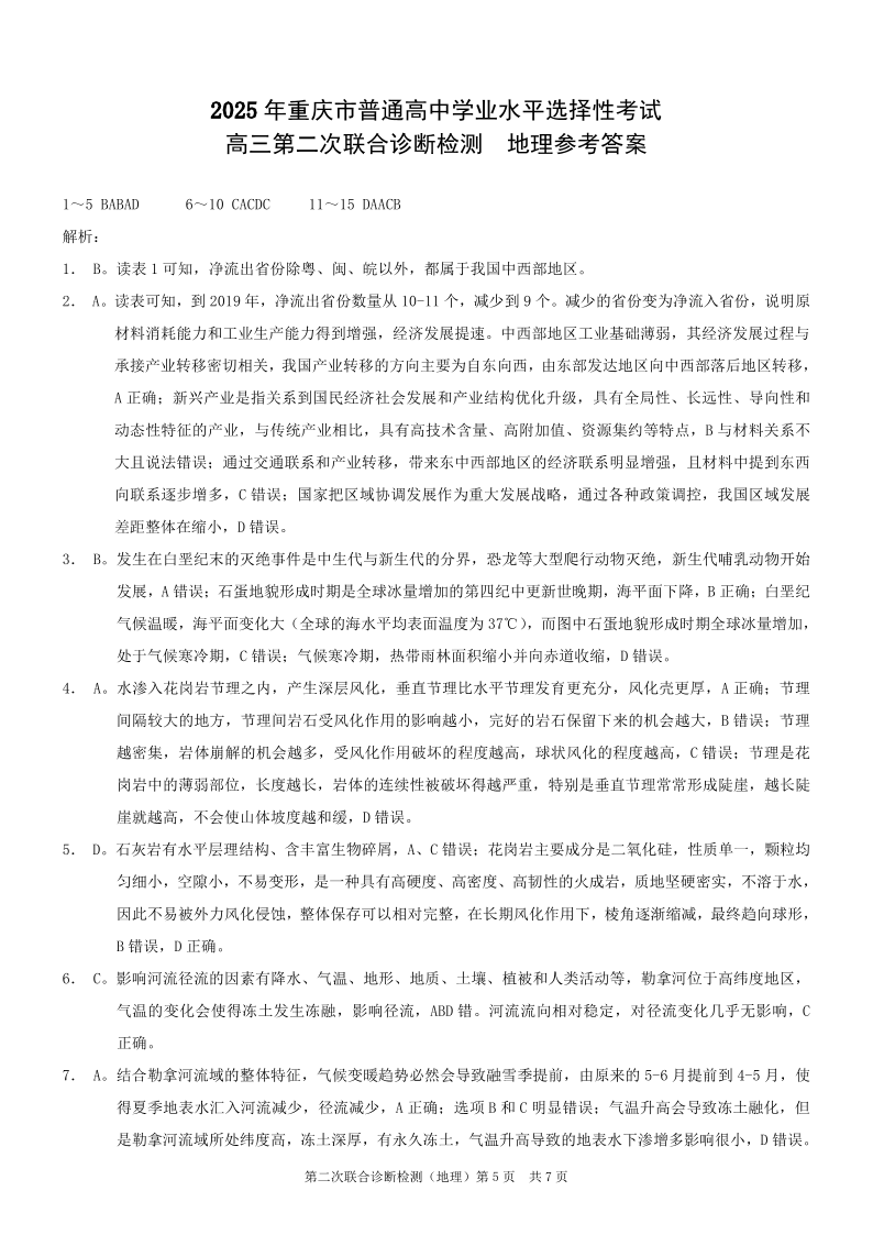 重庆市普通高中2025年高三第二次联合诊断检测(康德卷)地理参考答案.pdf