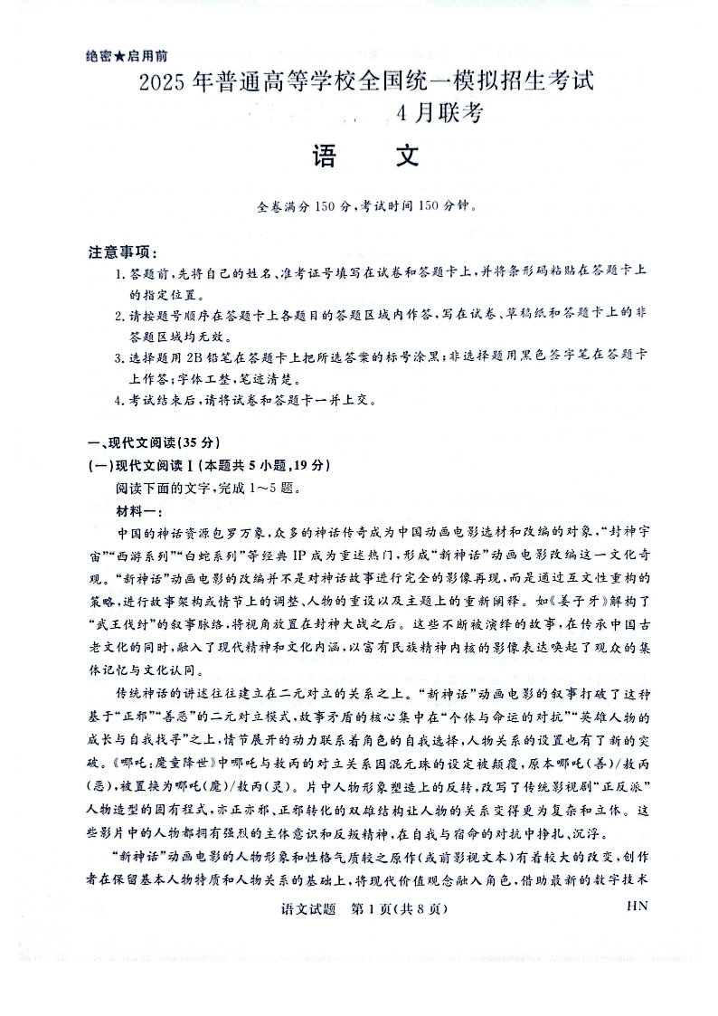 河南省金科新未来联考2025届高三下学期4月模拟预测 语文.pdf