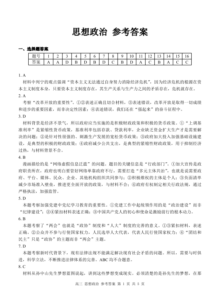广西2025年4月高三跨市联考 政治答案.pdf