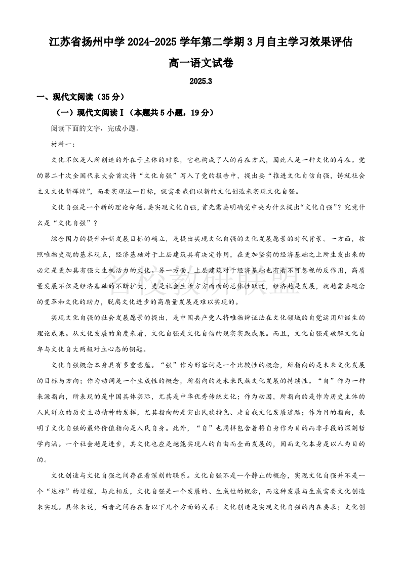 江苏省扬州中学2024-2025学年高一下学期3月月考 语文(含答案).pdf
