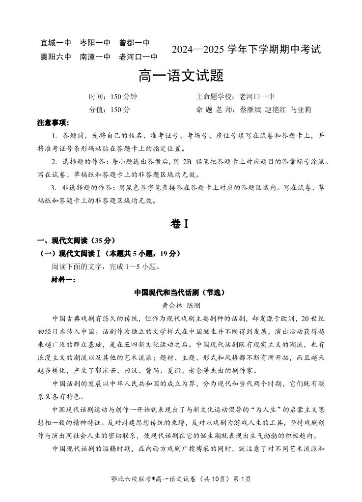 鄂北六校高一语文.pdf