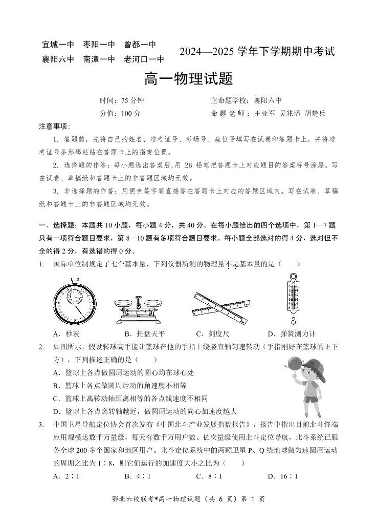鄂北六校高一物理.pdf