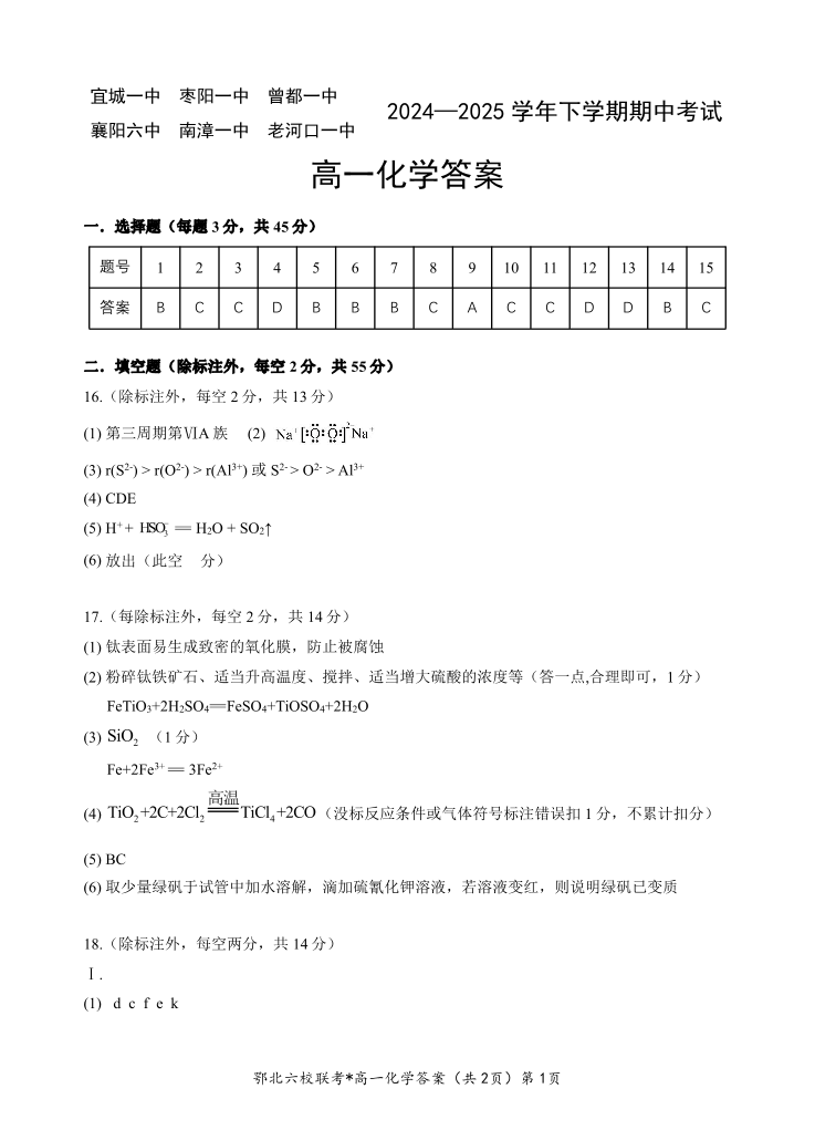鄂北六校高一化学答案.pdf