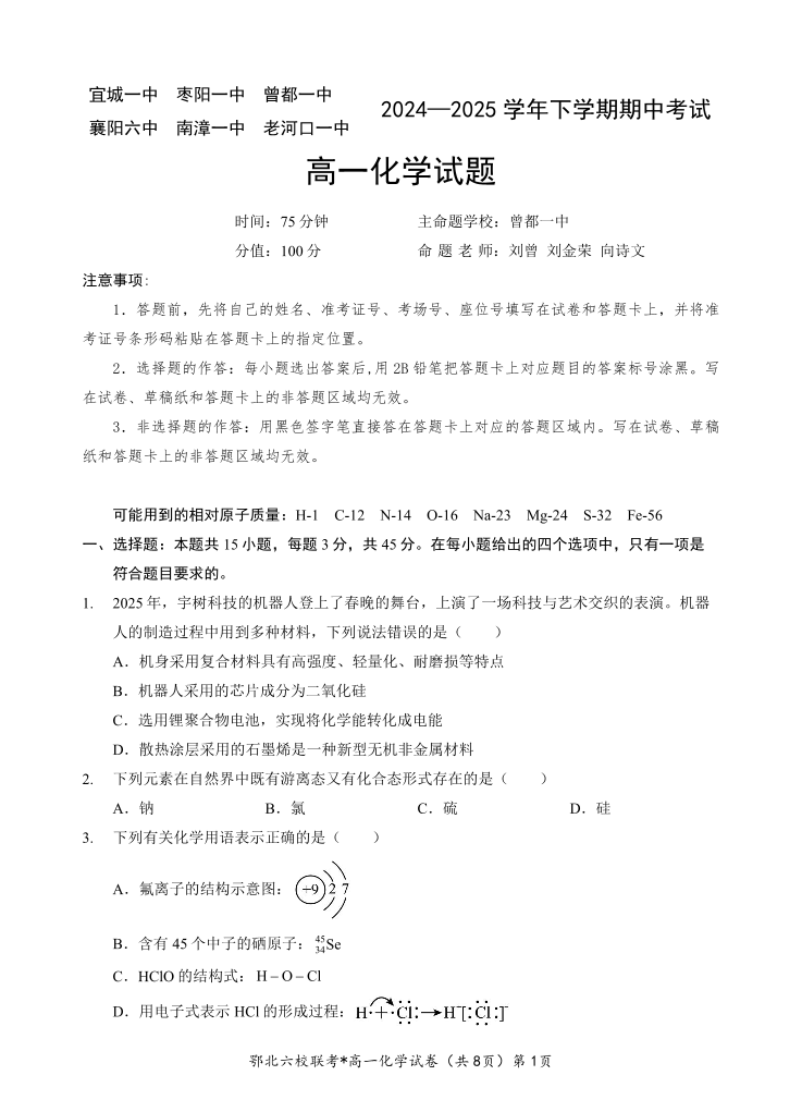 鄂北六校高一化学.pdf