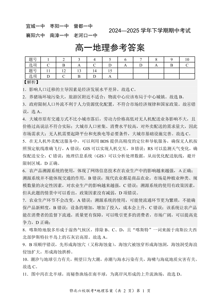 鄂北六校高一地理答案.pdf