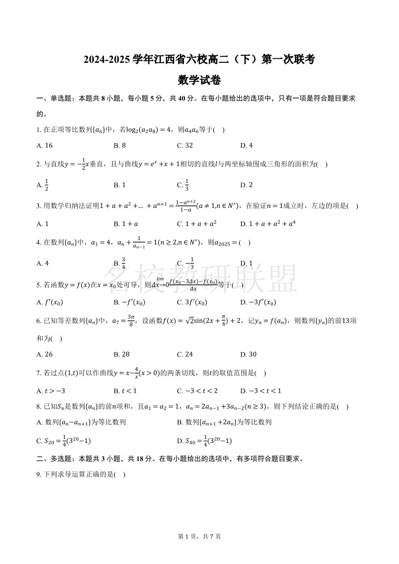 江西省六校联考2024-2025学年高二下学期第一次月考试题 数学(含答案).pdf