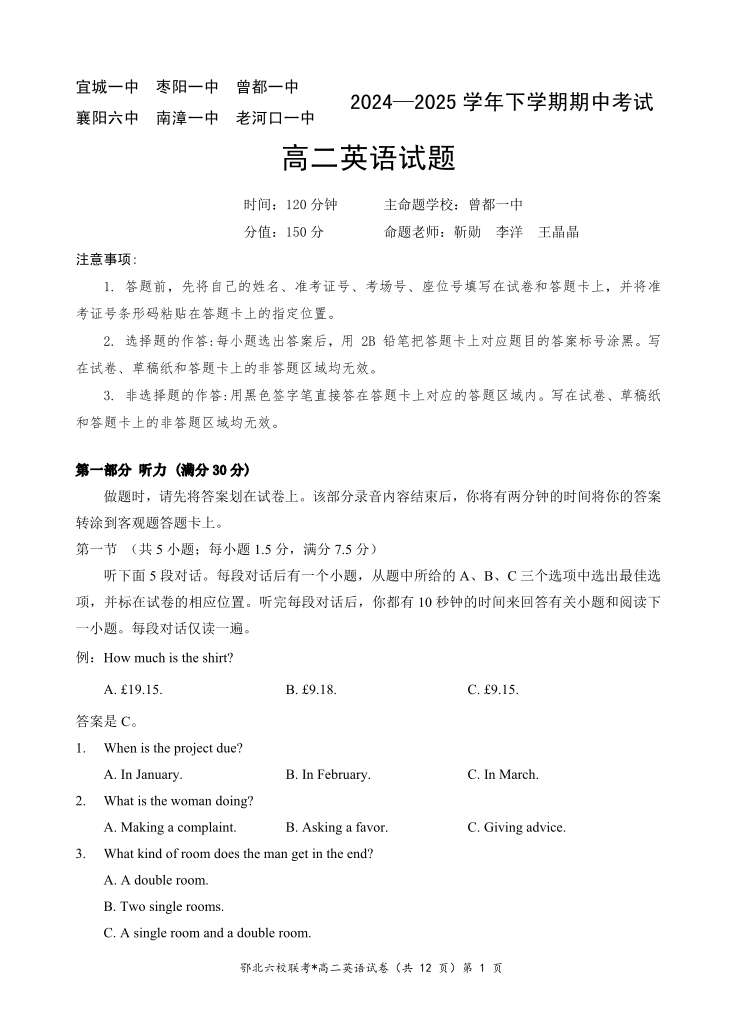鄂北六校高二英语.pdf