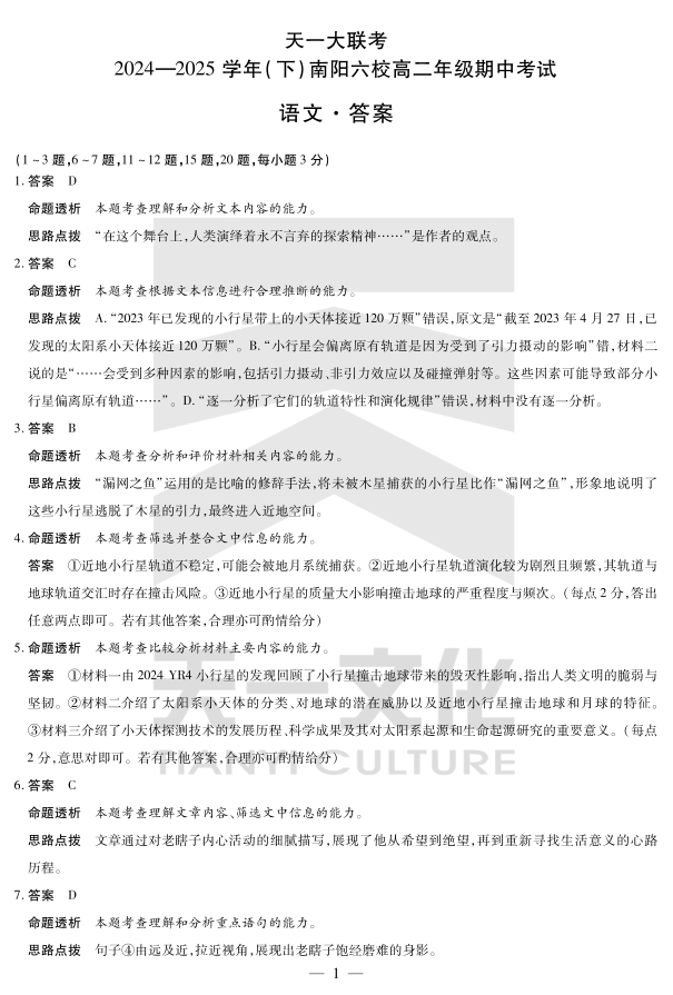 河南省2024-2025学年(下)南阳六校高二年级期中考试 语文答案.pdf